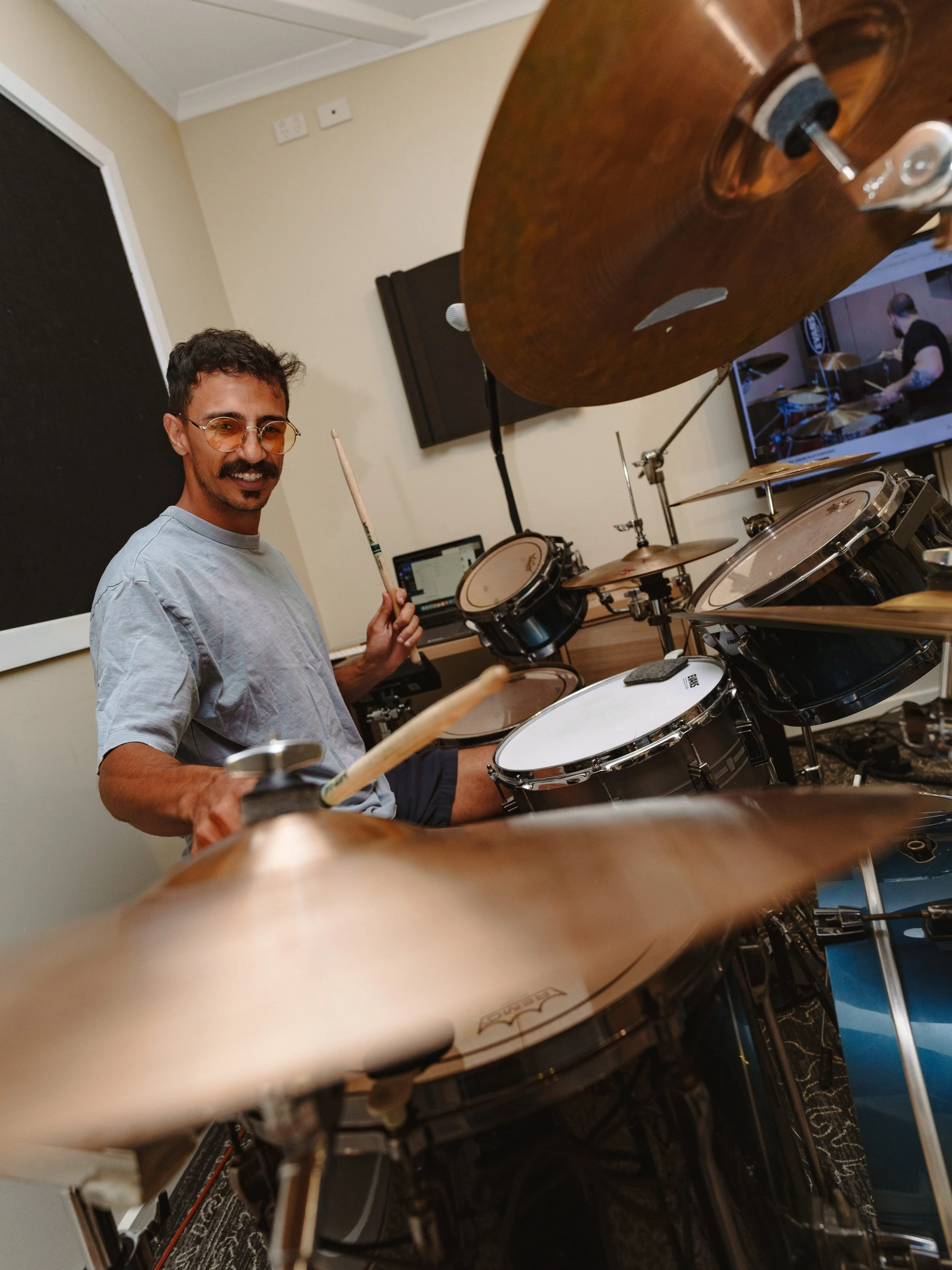 After studying drums during his formative years in Brazil, Matheus relocated to Australia, where he deepened his musical education and refined his technique. This cross-cultural journey not only broadened his musical influences but also allowed him to blend the raw power of Brazilian percussion with contemporary drumming styles in innovative ways. This led Matheus to be invited to join Australia’s pre-eminent Shakira cover band which he is now a member of.